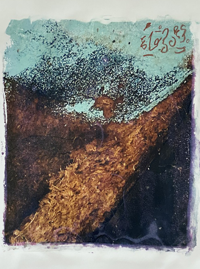I invite you to lay down that burden of needing to constantly interpret, and simply experience image and word devoid of inherent content. These works don’t have descriptive titles, so there no hint of the meaning of each. In fact, they have no inherent meaning.